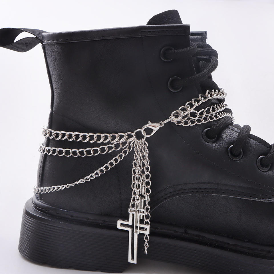 Multi Layered Cross Shoe Chain Zinc Alloy Detachable Punk Boot Accessory Unisex Daily Wear