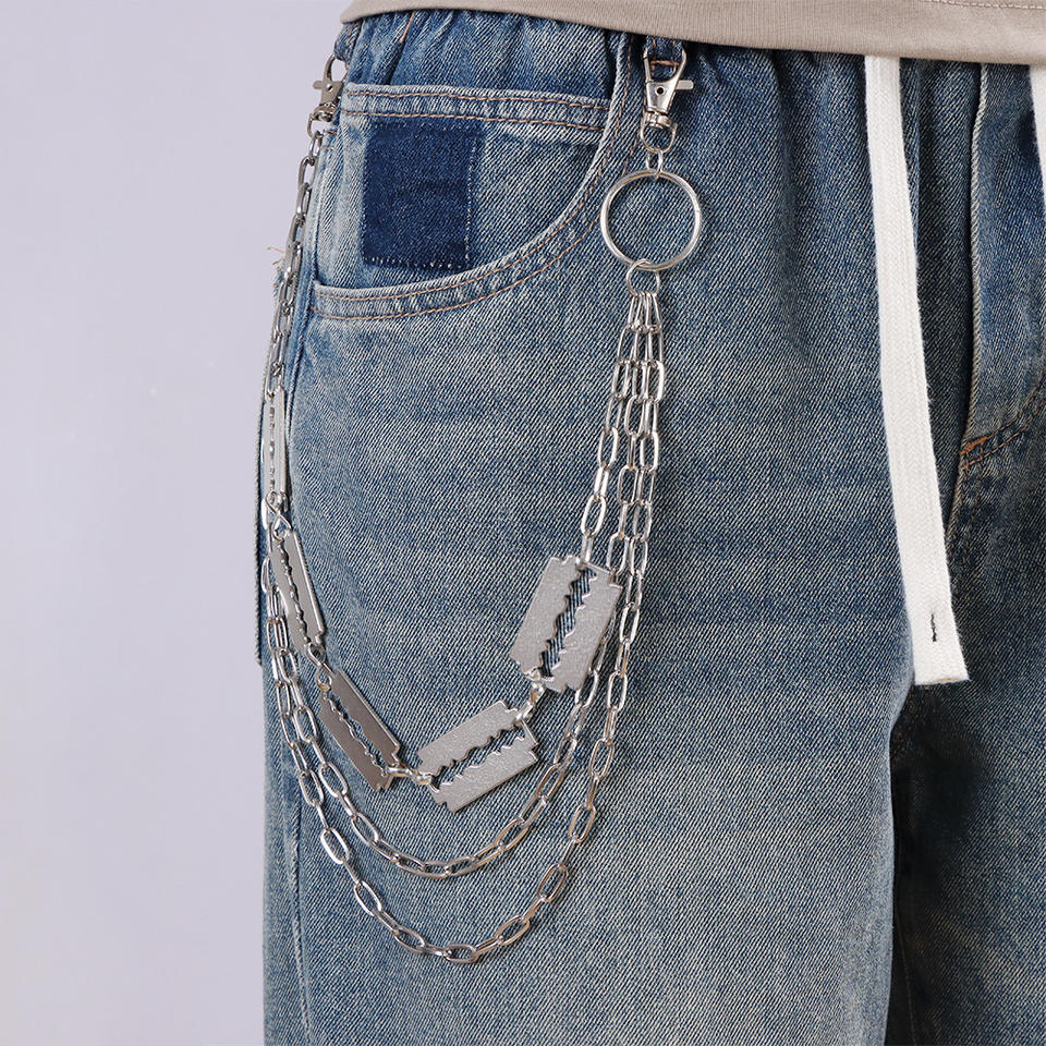 Multi Layered Metal Blade Pants Chain Zinc Alloy Punk Style Waist Chain For Denim Jeans Hip Hop Fashion Accessory