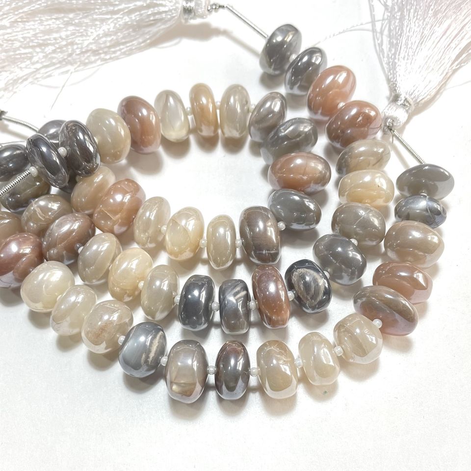 Multi Moonstone Coated Plain Rondelle Beads Smooth Natural Gemstone for Beading Supplies Wholesale