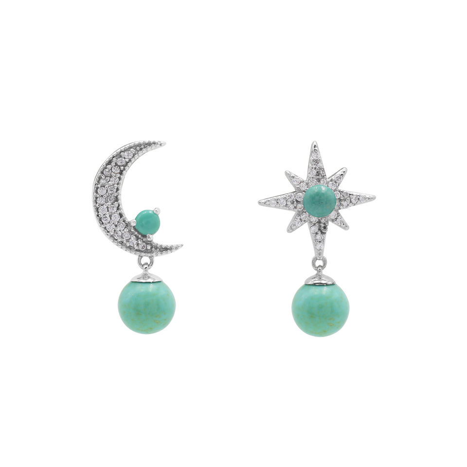 Multi Plated Jewelry 925 Sterling Silver Natural Turquoise Gemstone 24x14x6MM Size Moon-Star Design Fine Earring Indian Exporter