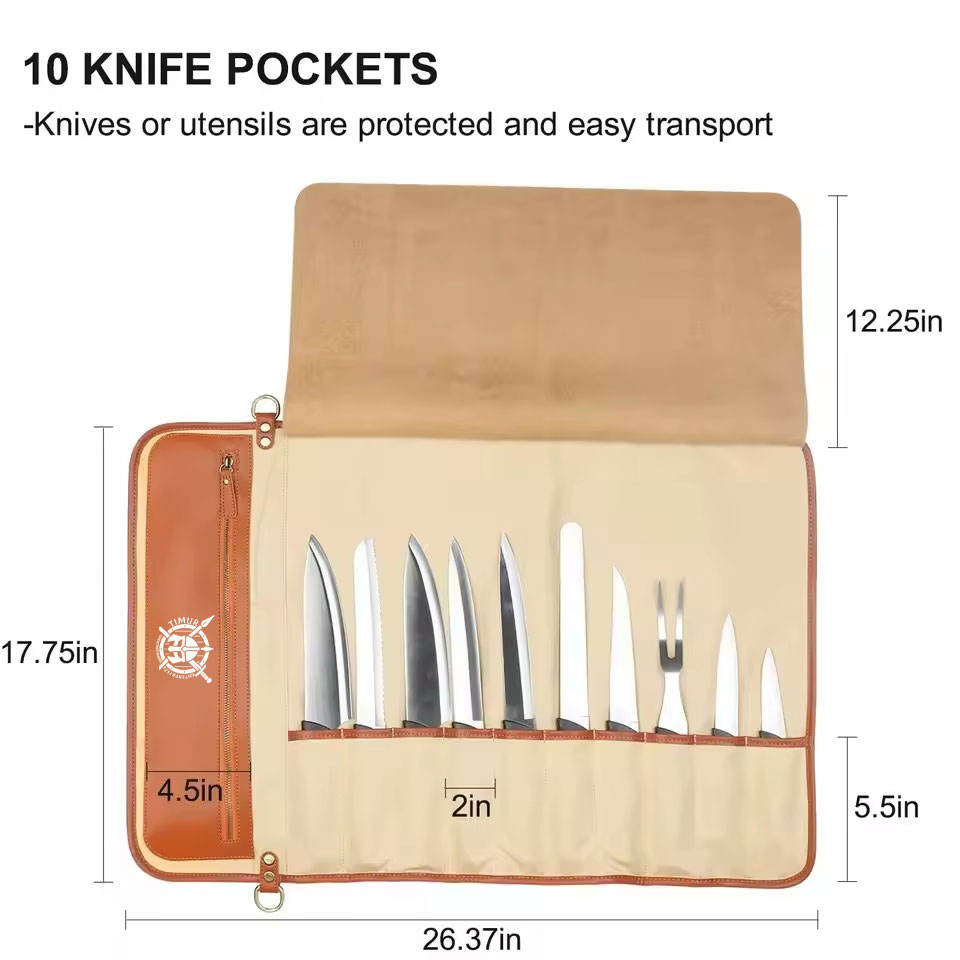 Multi-Pocket Genuine Leather Tactical Folding Knife Sheath Pouch Bag Belt Loop OEM/ODM Color Adjustable Strap Zipper Closure
