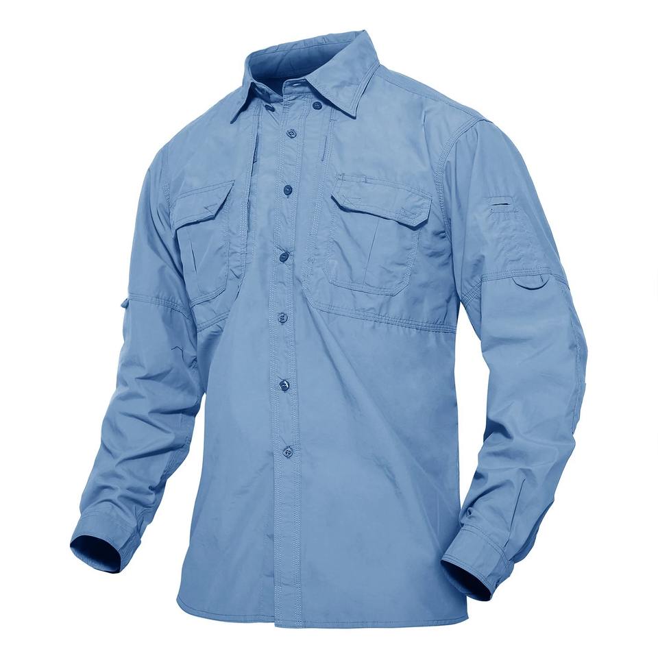 Multi-Pocket Outdoor Quick Dry Cargo Shirts Men's Work Shirts Fishing Camping Trekking Long Sleeve Nylon Shirts Tops