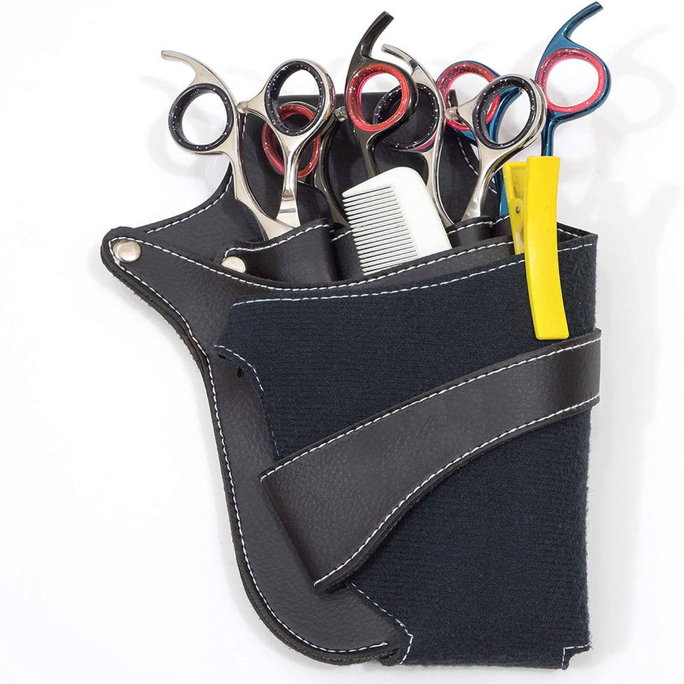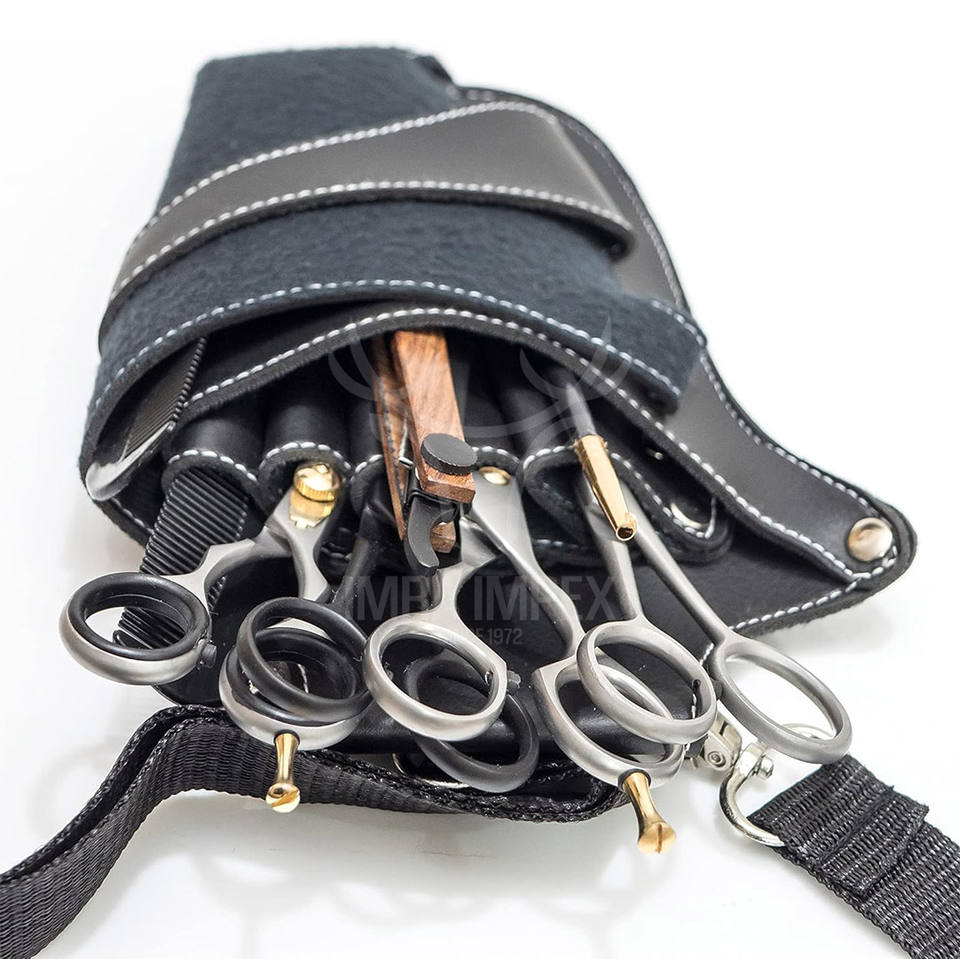 Multi Pocket PU Leather Shear Holster Adjustable Waist & Shoulder Belt Scissor Holder for Hairdressers Barbers & Pet Groomers