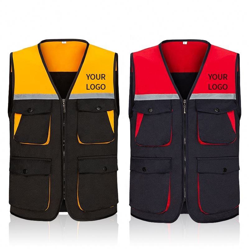 Multi-Pockets Reflective Work Vest Cotton Men's Matching-Color Multi-Function Vest Custom Work Vest
