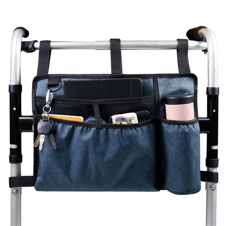 Multi Pockets Wheelchair Side Storage Bag Hanging Wheelchair Storage with Cup Holder Hanging Travel Wheelchair Bag