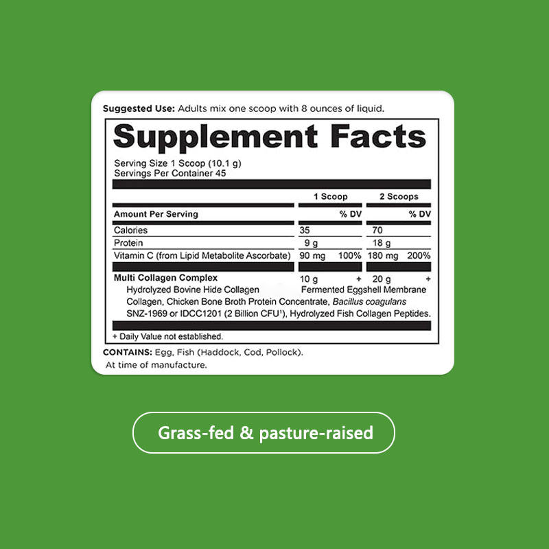 Main Ingredient:Fermented Eggshell Membrane Collagen, Chicken Bone Broth Protein Concentrate, Bacillus coagulans, Vitamin C