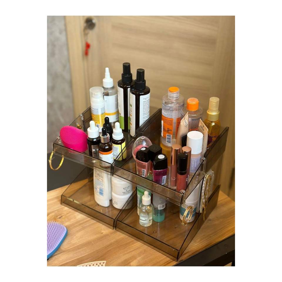 Multi-Purpose 2-Piece Set Durable Plastic Two-Storey Organizer Shelf Stand for Makeup Jewelry Care & Kitchen Storage