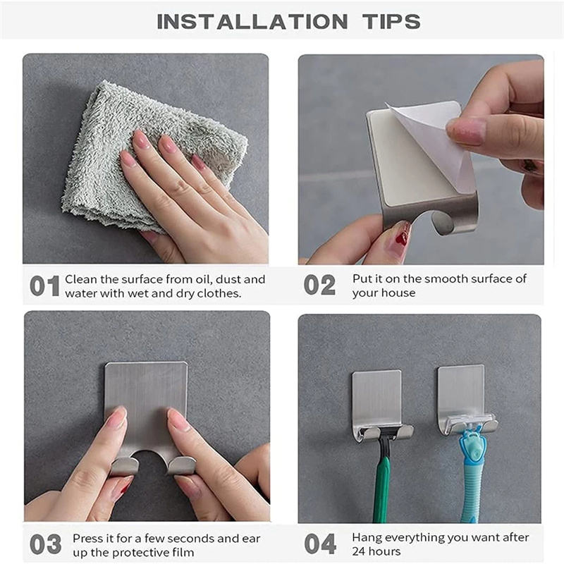 Multi-Purpose Self Adhesive Storage Hook Stainless Steel Hook Hanger for Bathroom Kitchen Organizer Tool and Jewelry Storage