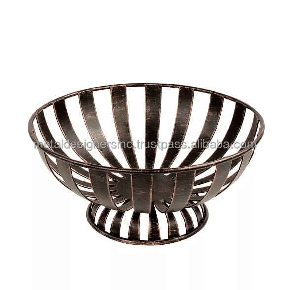Multi-Purpose Simple Unique Design Wire Basket Metal Black Copper Antique Vintage Fruit Basket for Home Use Food Display Storage