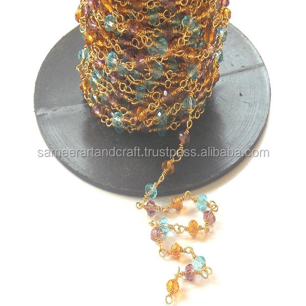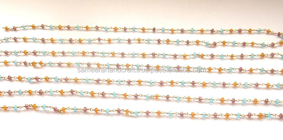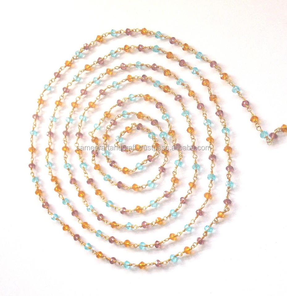 Multi Quartz Gemstone Beads Jewelry Gold Plated Jewelry Making Statement Beaded Rosary Birthstone Boho Chain