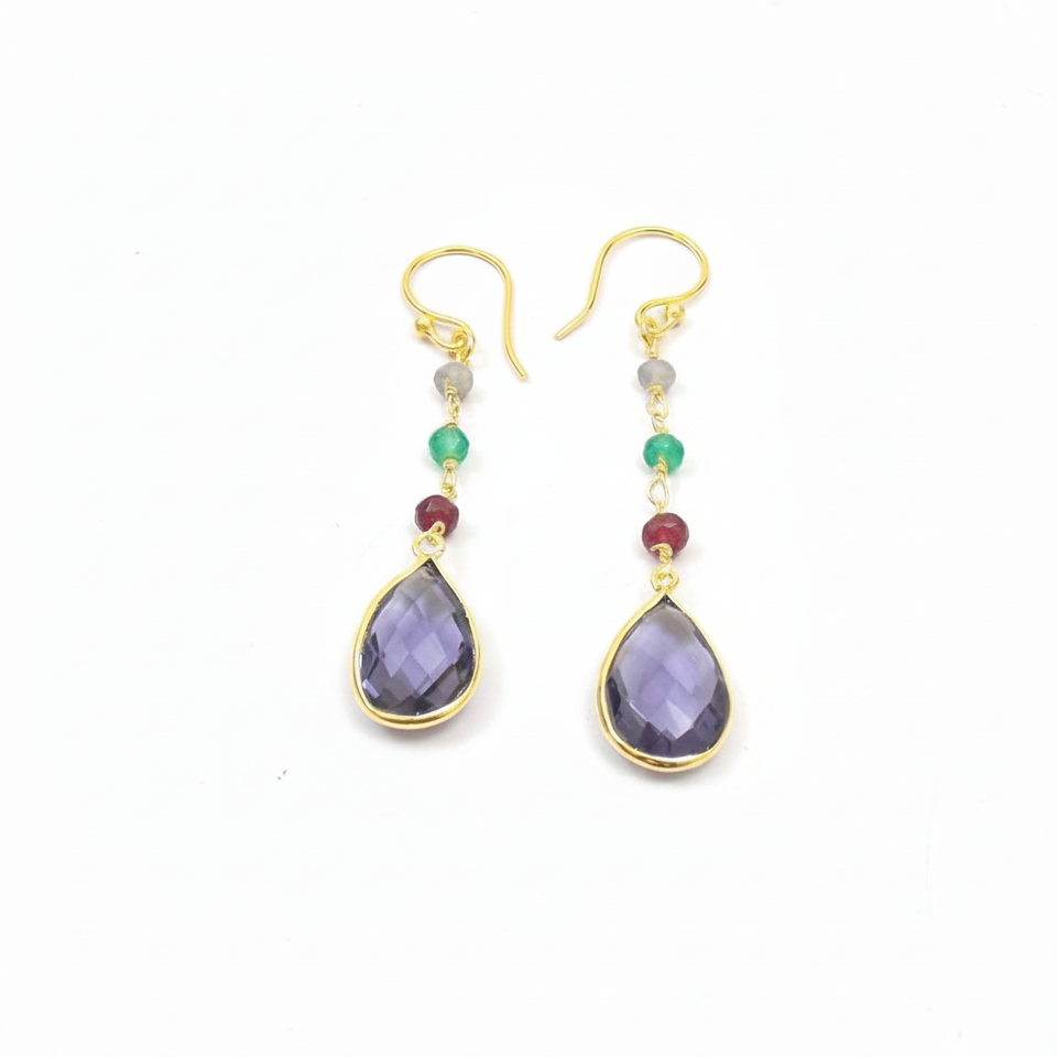 Fashion Chandelier Earrings Multi-Rosary Jewelry Charm with Amethyst Stone