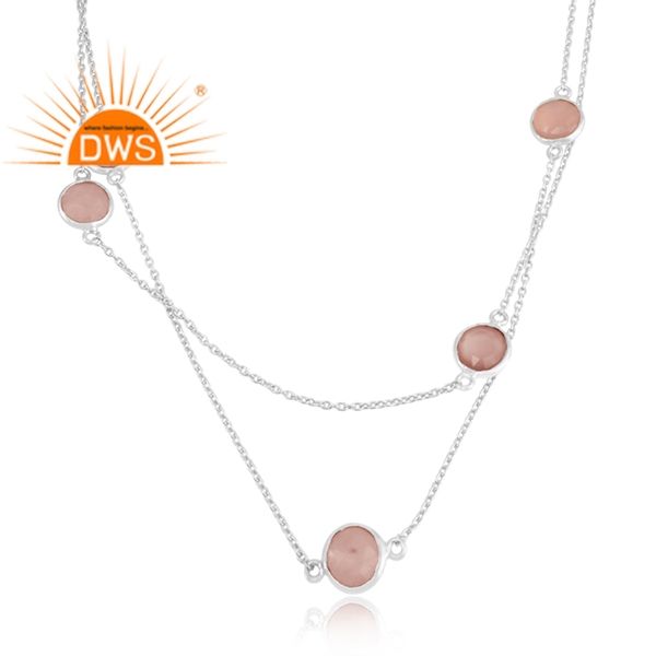 Multi Rose Chalcedony Gemstone Necklace Wholesale Designer 925 Fine Silver Long Chain Necklace Jewelry Classic Collection