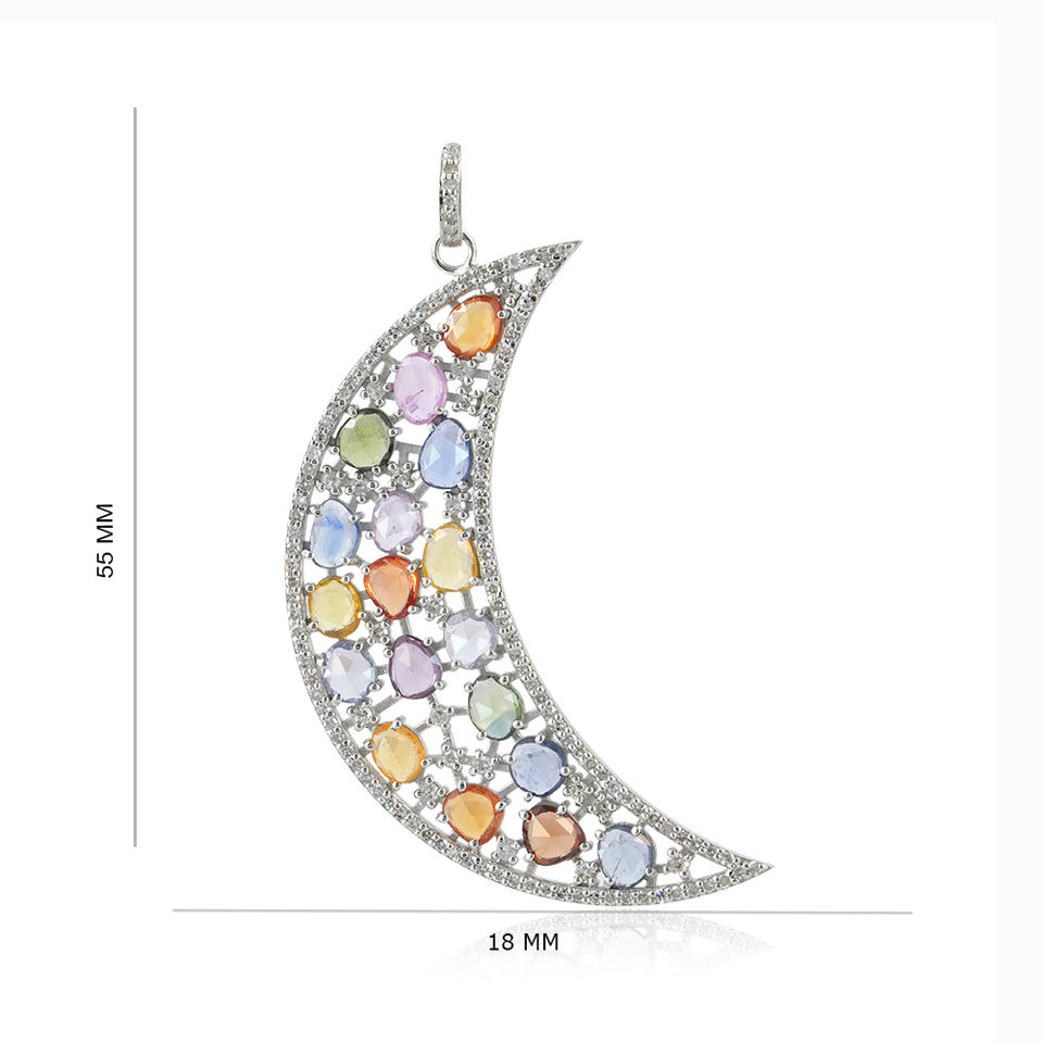 Multi Sapphire Gemstone Genuine Pave Diamond Sterling 925 Silver Handmade Big Crescent Moon Pendant Fine Jewelry Wholesale