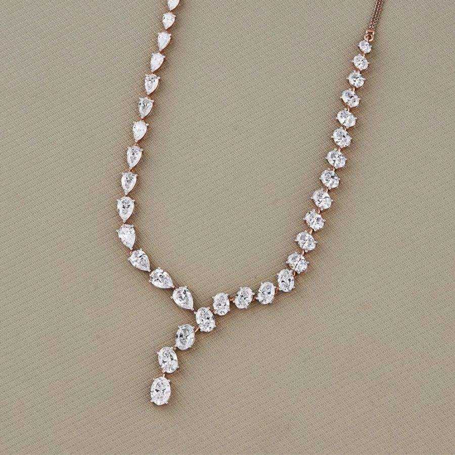 Multi-Shape 14K Gold Tennis Lab Grown Diamond Choker Unique Wedding Necklace with Oval Pear Cut Diamond