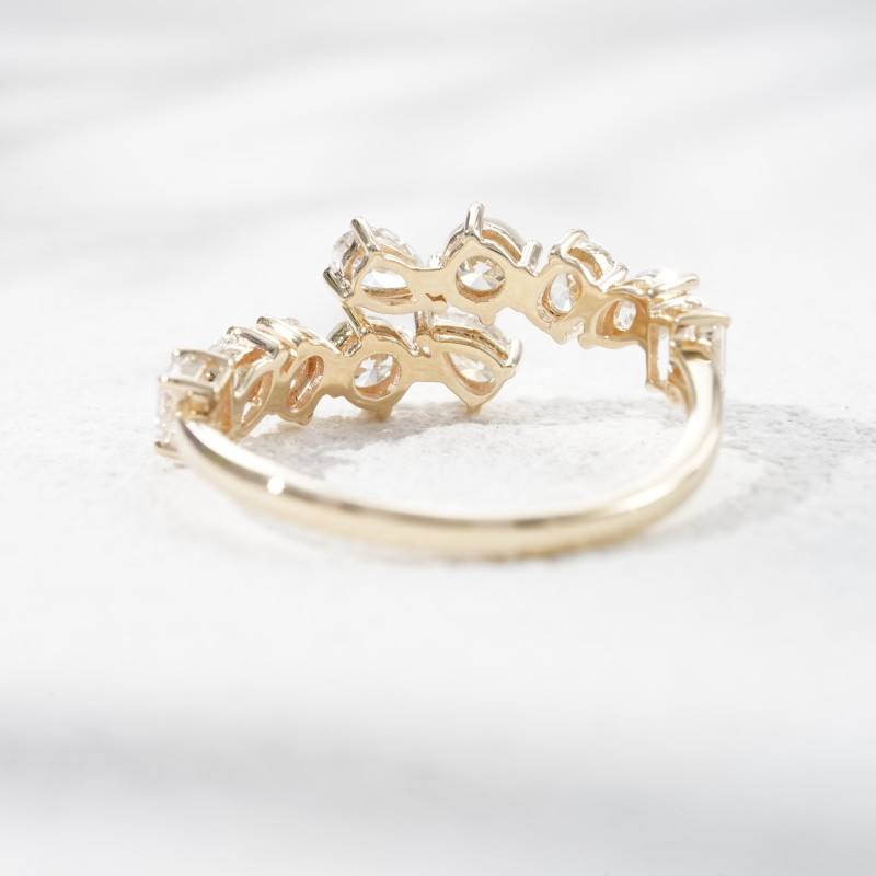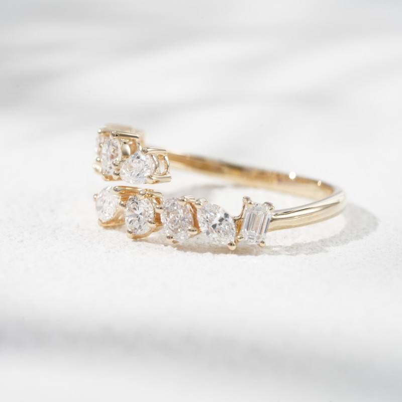 Multi Shape Lab Diamond Open Cuff Ring 10k Solid Gold Wedding Ring