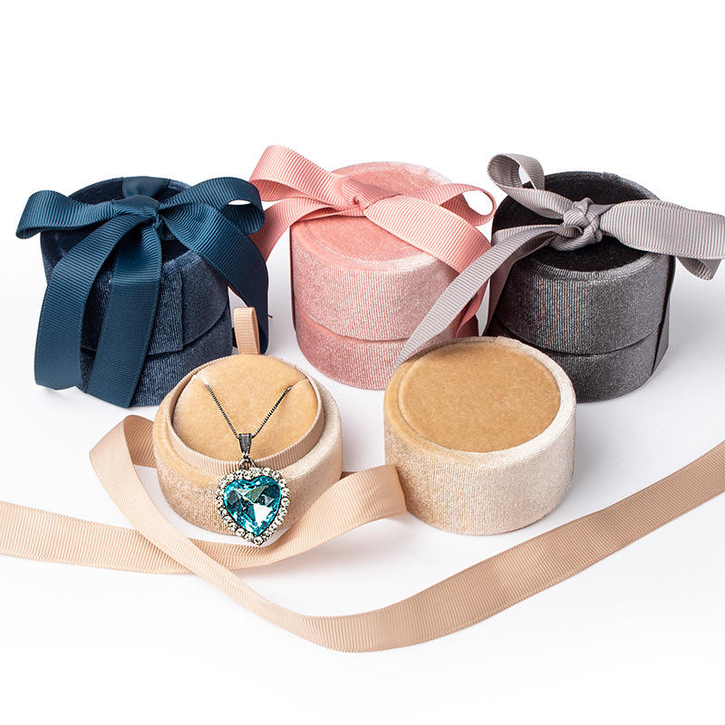 Multi Shapes Custom Jewelry Box Round Pink Ring Box Packaging Velvet Wedding Ring Earrings Jewellery Packaging Box with Ribbon