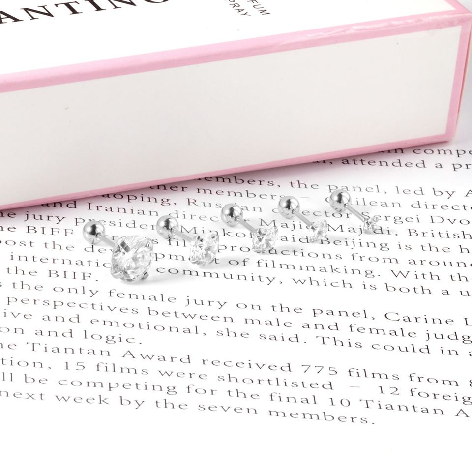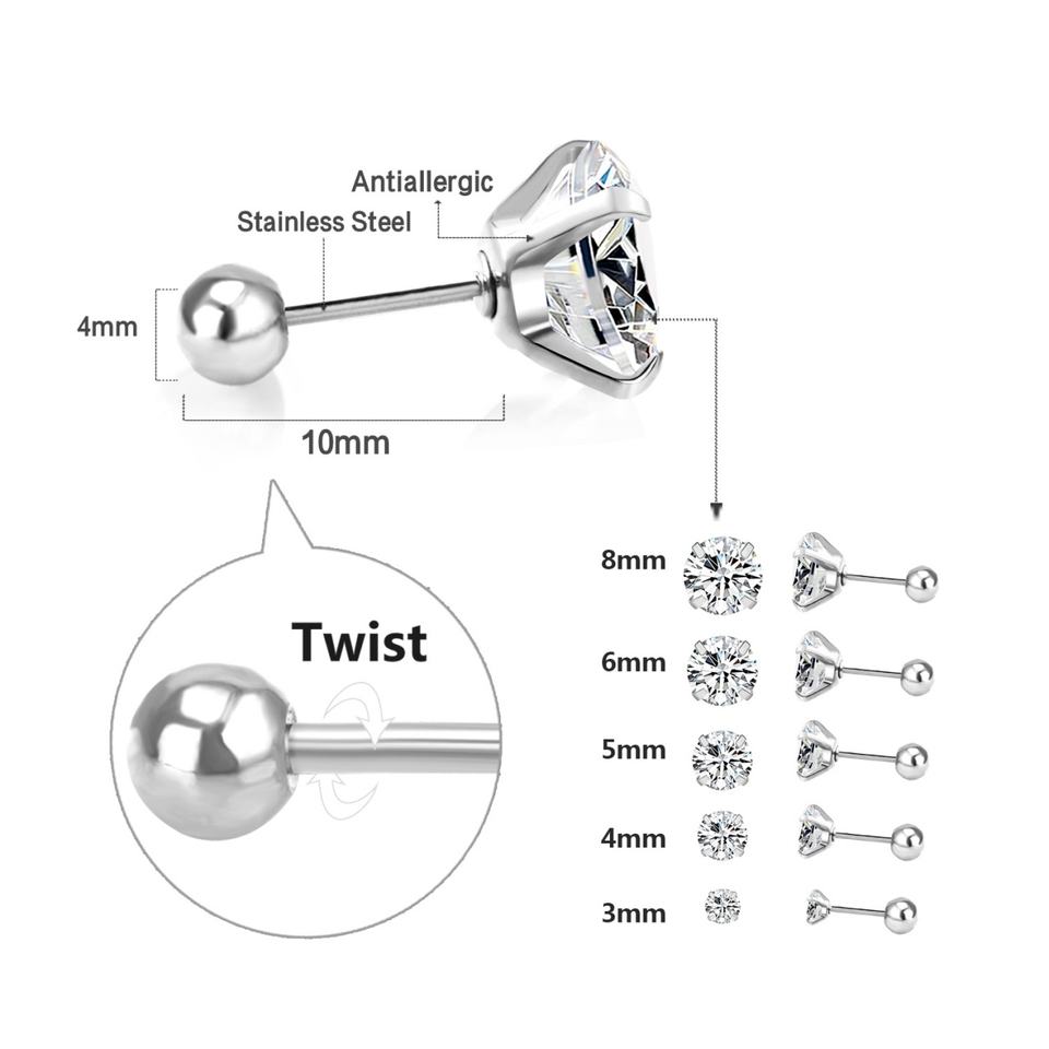 Multi Size Gold Plated Round White Diamond Stud Earring Screw Men Earrings Stainless Steel Screw Earrings