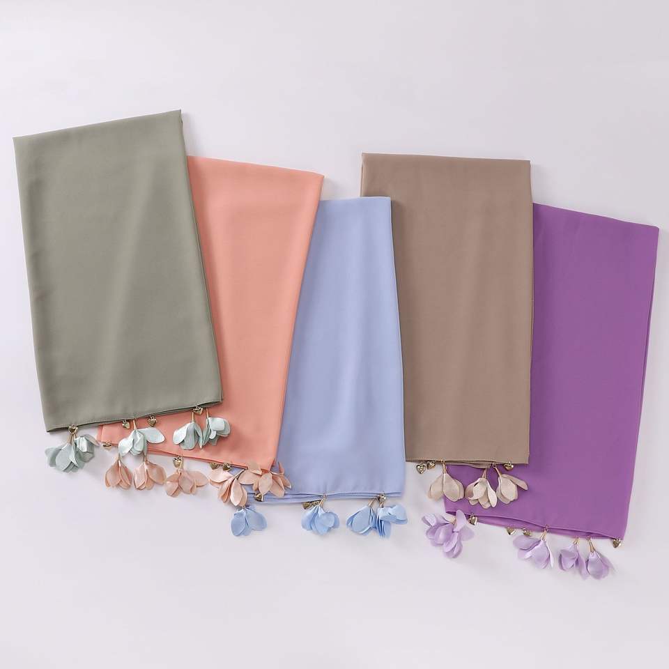 Multi Solid Color New Wholesale Muslim Lady Summer Hijab Shawls Love Flower Pearl Chiffon Scarf Long Scarf Crepe Silk Scarf