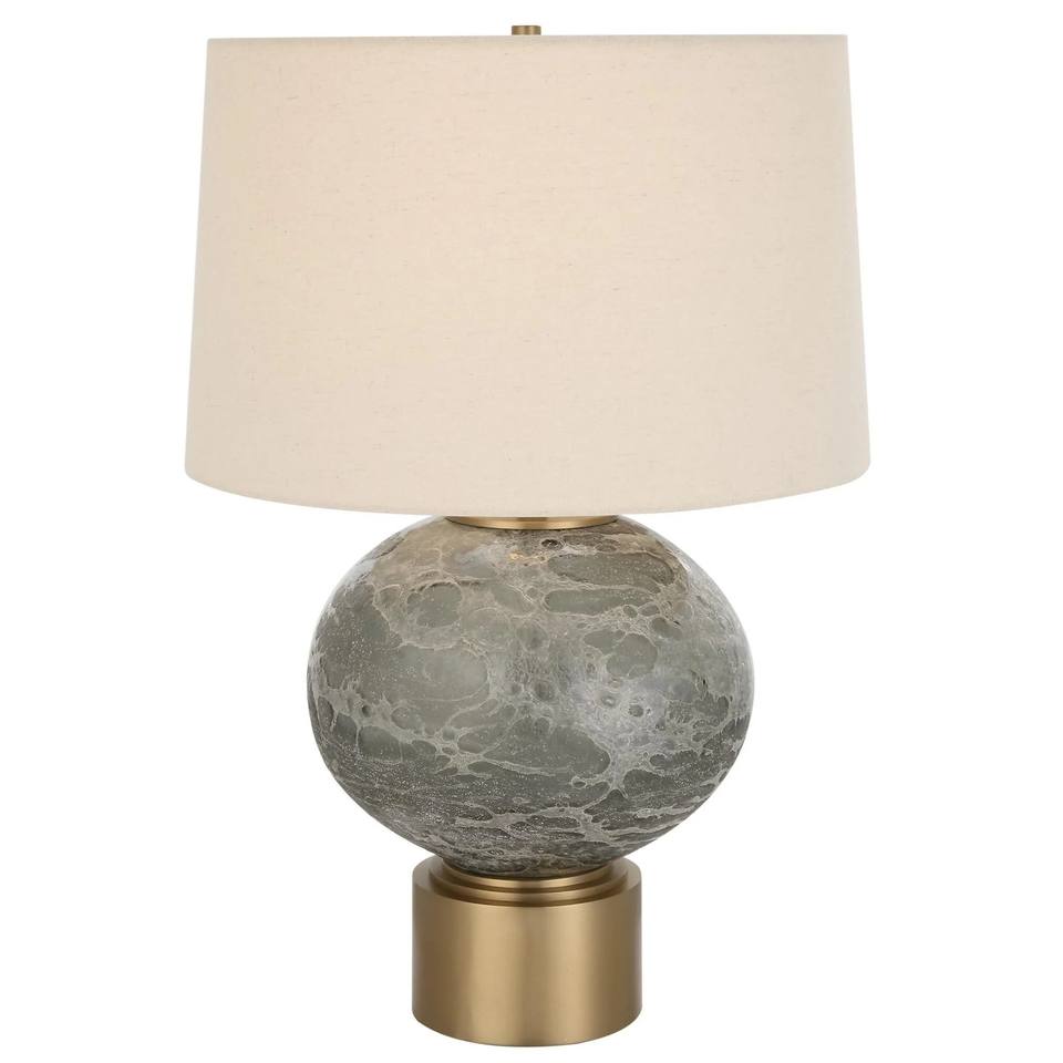 Multi-Tone Striped Ceramic Orb Table Lamp with Linen Shade | Modern Rustic Lighting for Hotel Cafe & Open Office Area