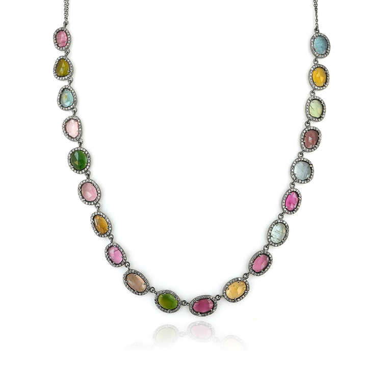 Multi Tourmaline Gemstone Pave Diamond Oxidized 925 Silver Handmade Long Necklace Jewelry Wholesale