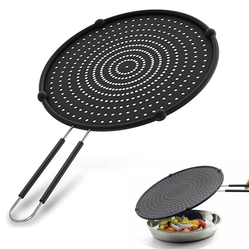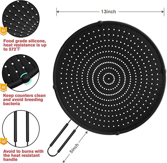 Multi-Use Heat Resistant Food Safe Frying Pan Hot Cooking Splash Grease Guard Drain Board Silicone Oil Splatter Screen