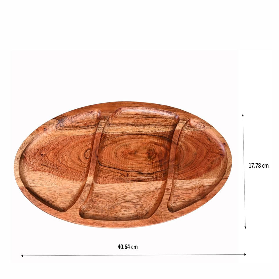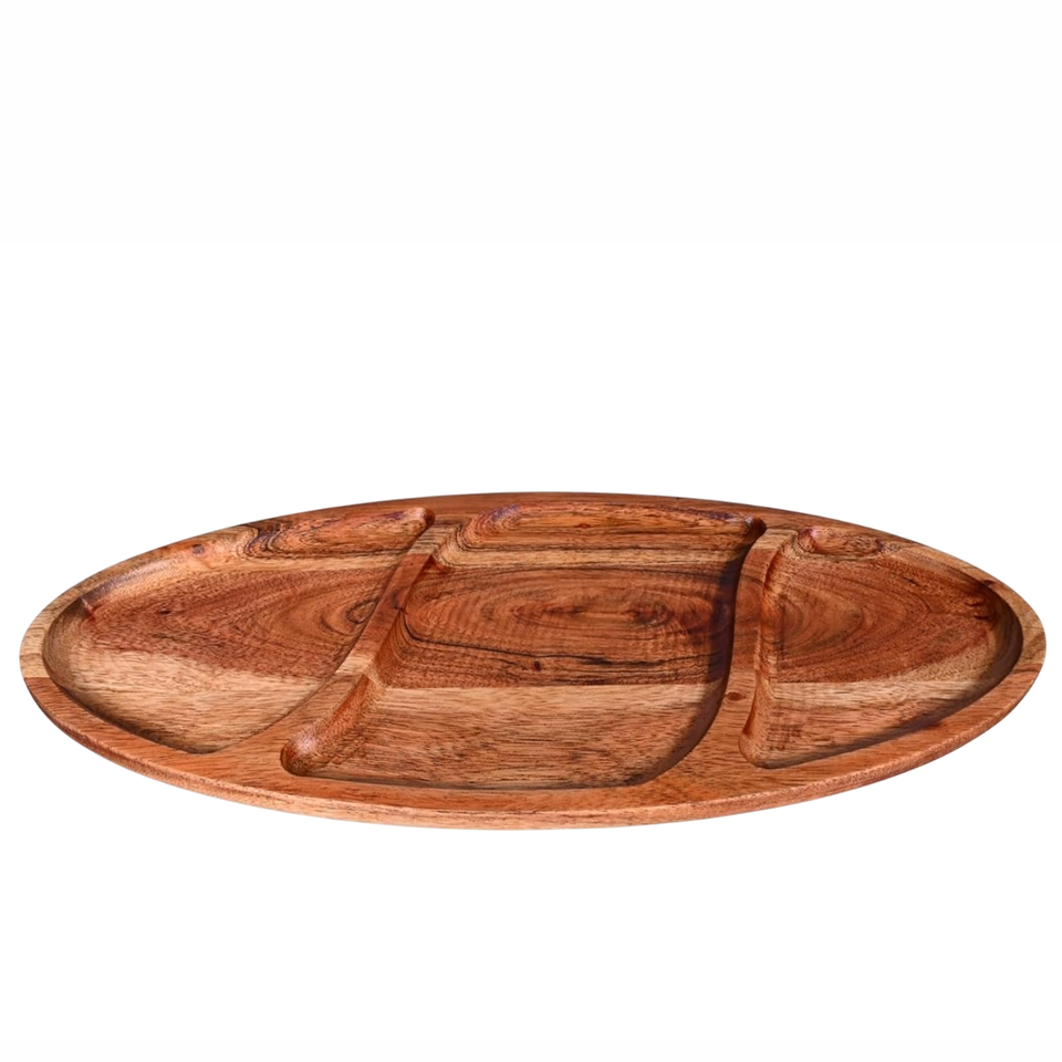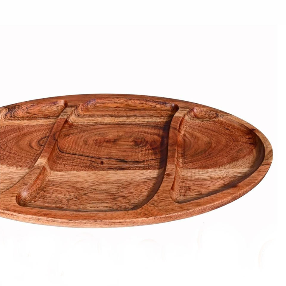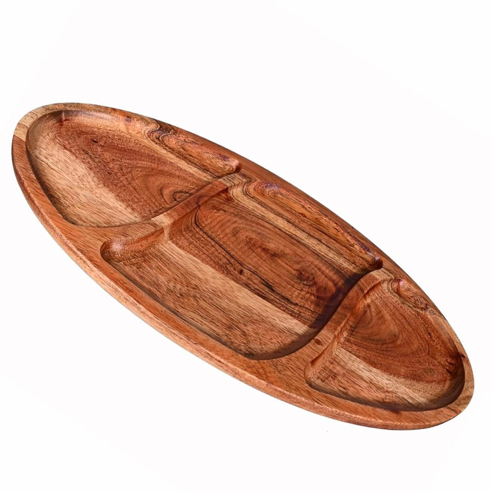 Product Name:Acacia Wood Oval Serving Tray with 3 Sections