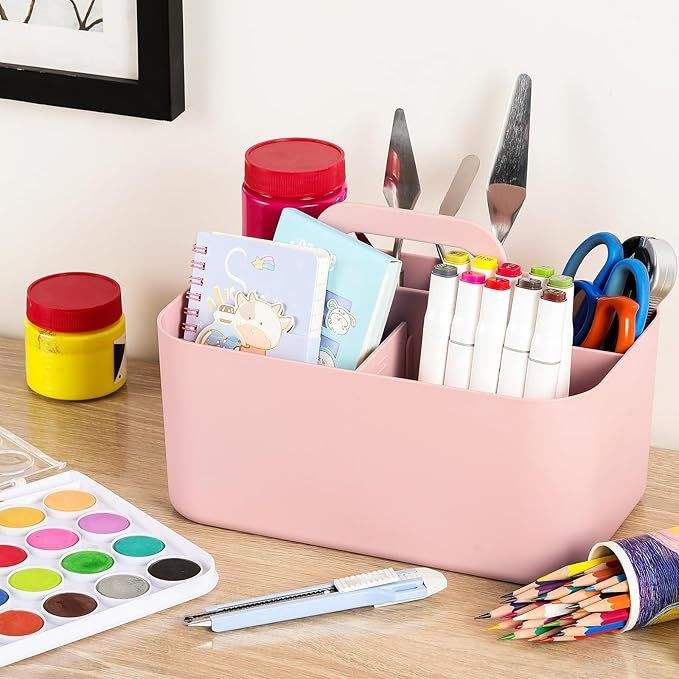 Multi-Use Stackable Plastic Caddy Organizer Handle Stationery Pen Holder for Art Craft Supplies Office Desk Bin Storage