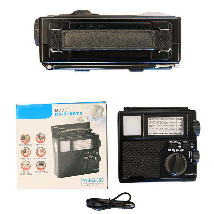 Multi-band Pointer-type Portable Solar-powered Rechargeable Manual Frequency-adjustable Card Type BT Radio with Flashlight