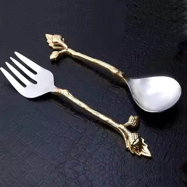 Designer MOP Handle Salad Server Set Elegant Kitchenware Cutlery Golden Polished Salad Spoon Fork Set Hot Food Serving Tools