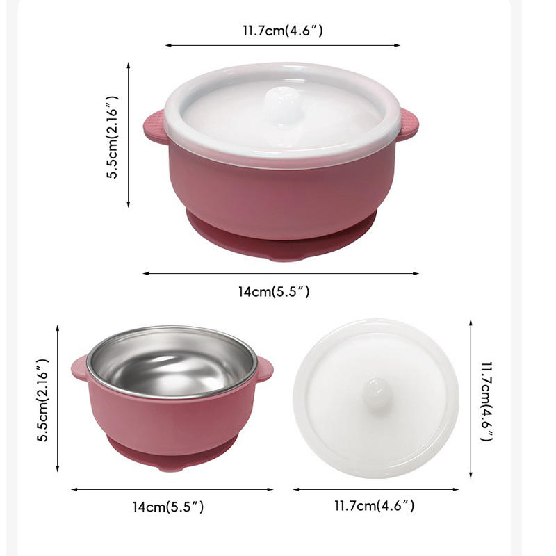 Multi-color Food Grade Silicone Baby Feeding Set with Matching Lid Non-Toxic & Eco-Friendly for Baby Meals or Kitchen Storage