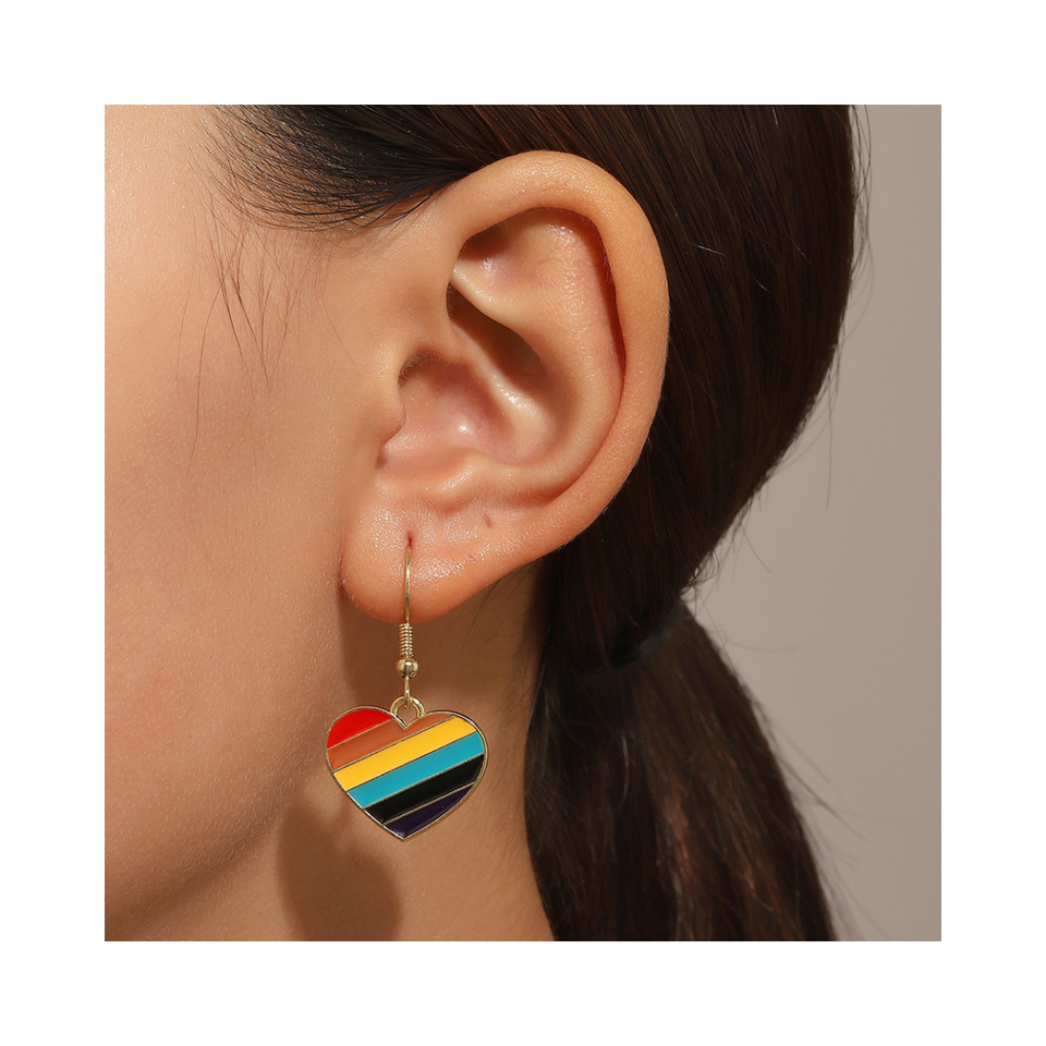 Multi-color Heart Shaped Drop Earrings Trendy Gold Plated Rainbow Color Stripe Epoxy Drop Earrings Heart Dangle Earring