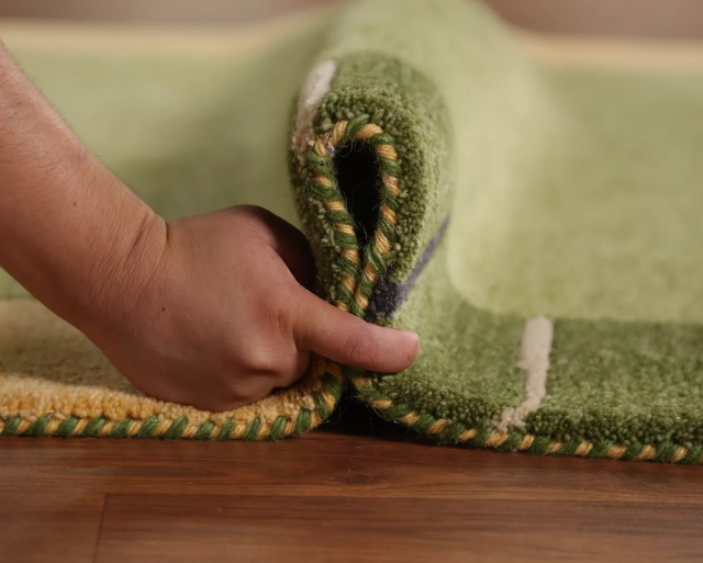 Multi color boarder Green base hand tufted wool high quality handmade eco friendly non slip rug for Living room kids commercial