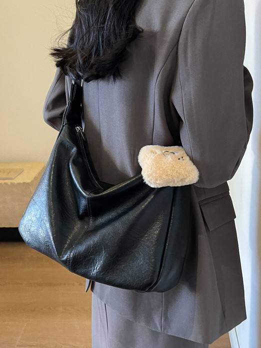 Multi-colored leather large-capacity shoulder bag, sweet style plush charm women's handbag series