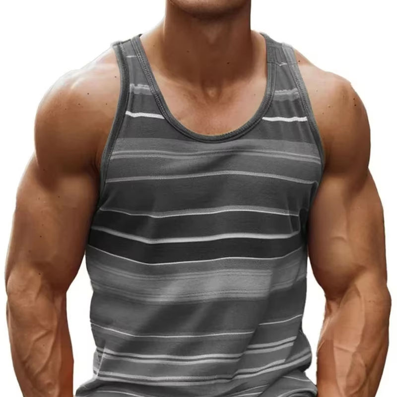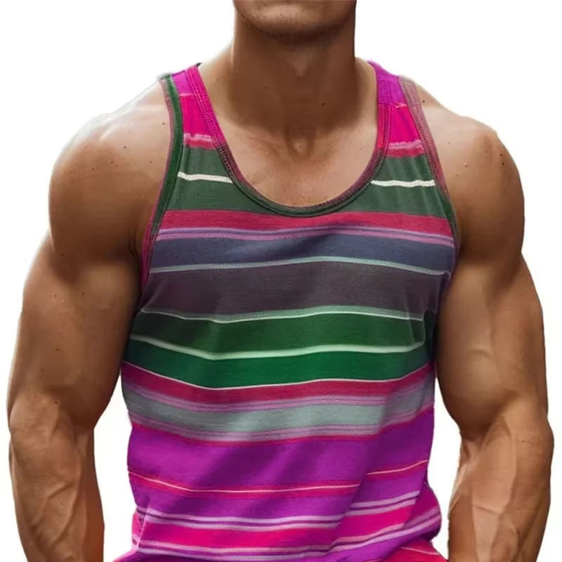 Multi-colour Men's Round Neck Rainbow Stripe Print Casual Tank Top Summer Fashion Simple Sleeveless Vest Breathable Men Clothing