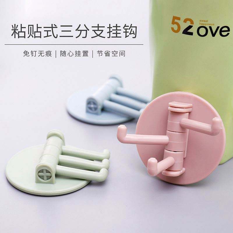 Multi-functional Bathroom Wall Shelf Perforation-free Traceless Hanger Swivel Hook Powerful 3-point Swivel Stick Hook