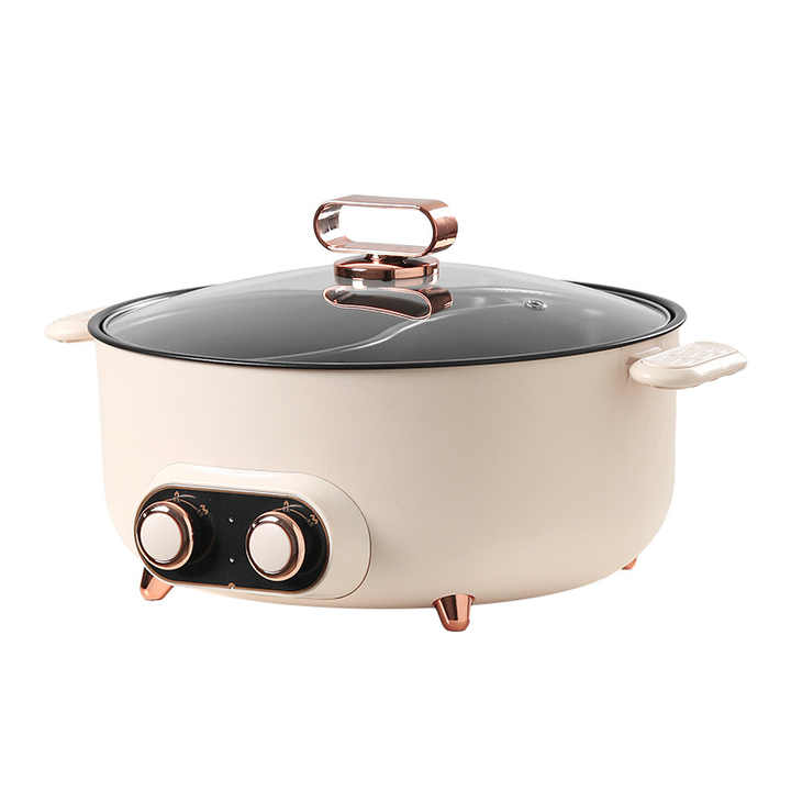 Multi-functional Electric Hot Pot , 3L Electric Cooker with Ceramic Non-stick Dual Pot, for Soup, Steak, Pasta, Noodle, Shabu