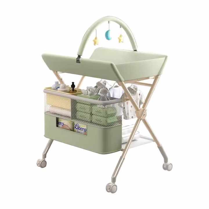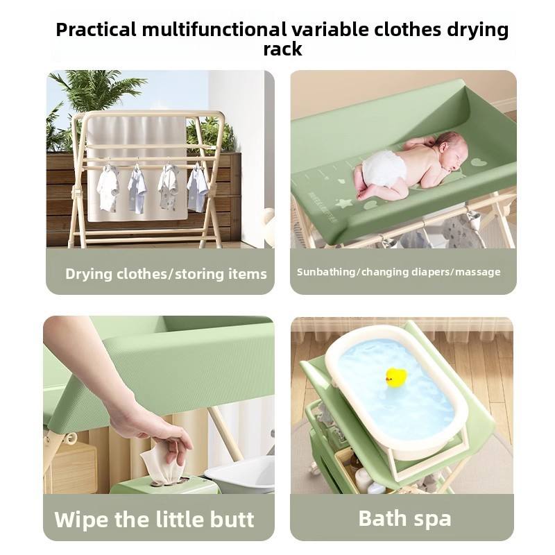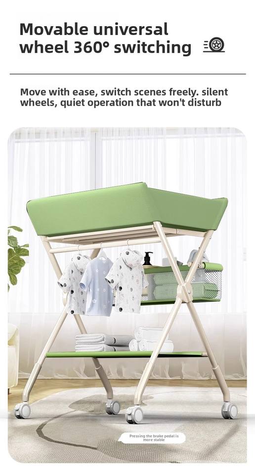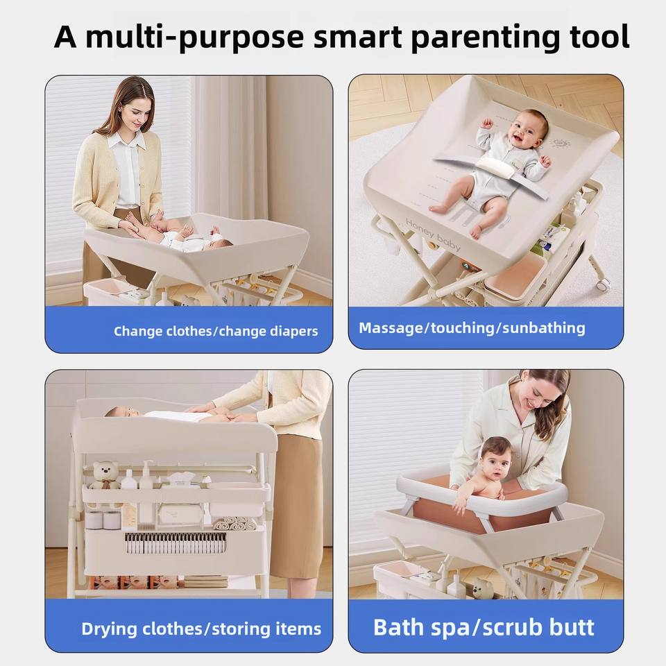 Multi-functional Foldable Baby Changing Table for Newborns with Adjustable Height, Massage Touch and Storage, Portable Nursery