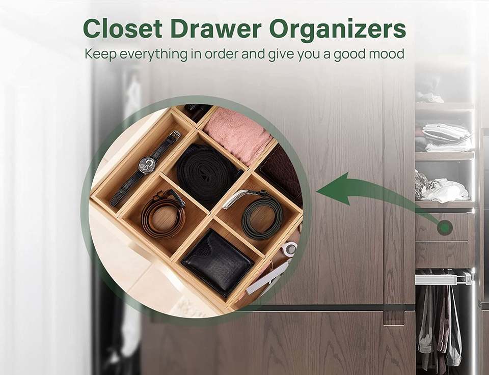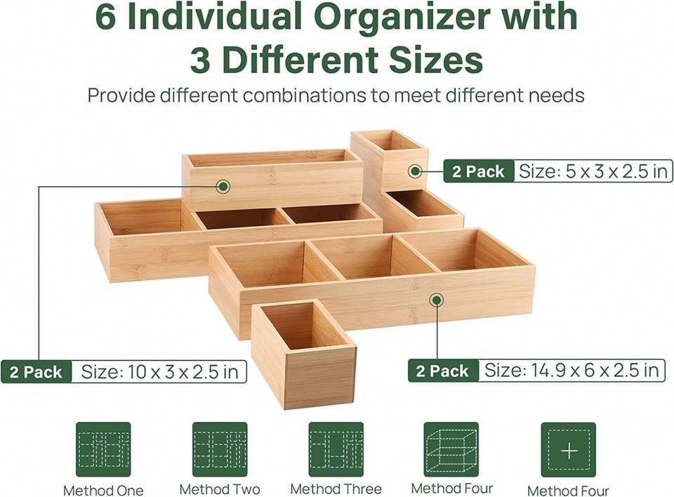 Multi-functional Kitchen Drawer Organizer Bamboo Drawer Organizer Set for Silverware Flatware Kitchen Utensils and Office