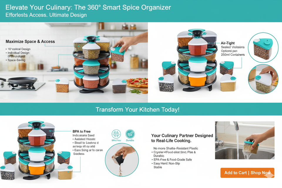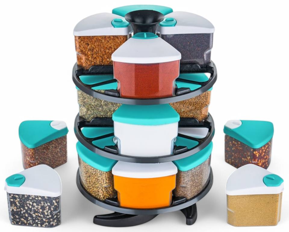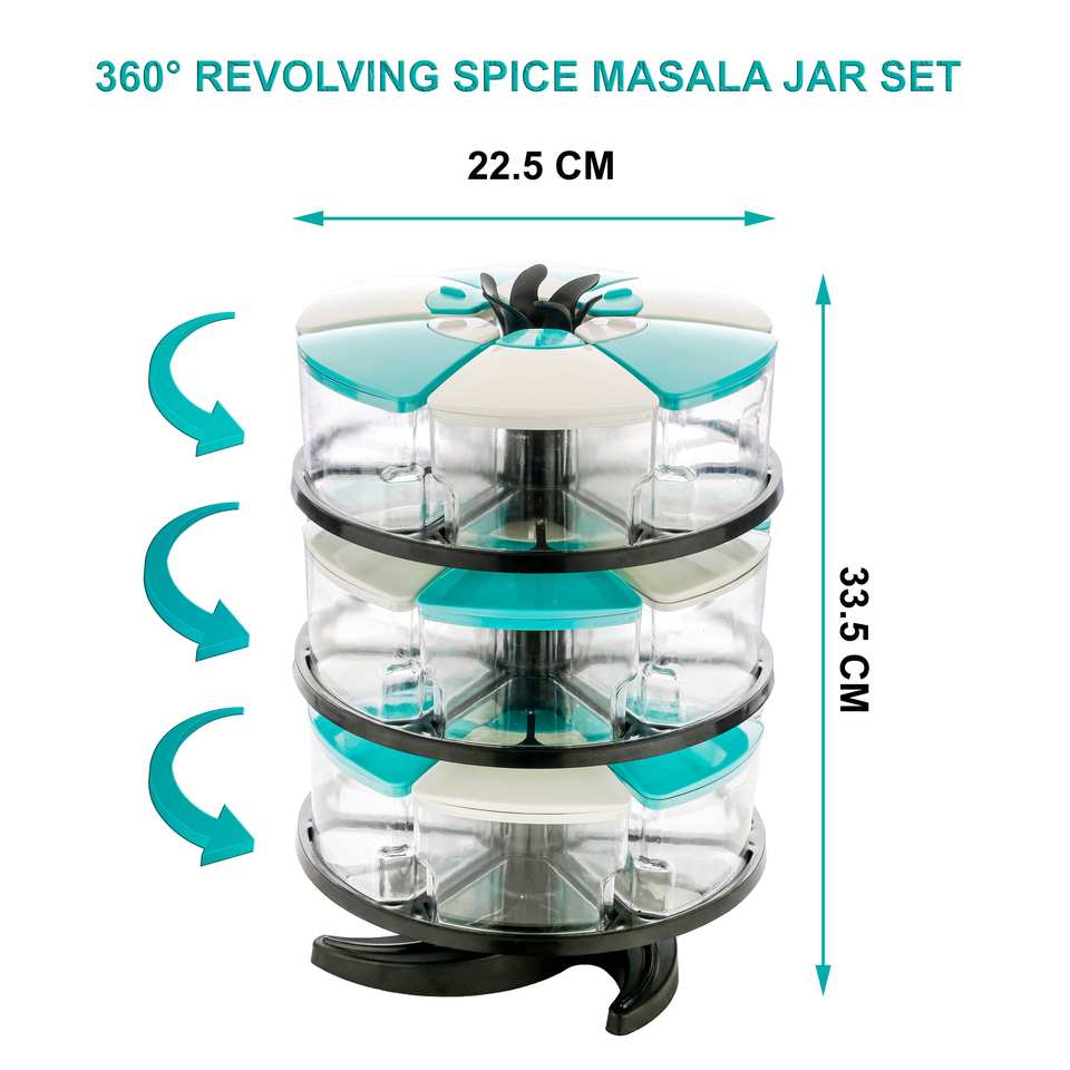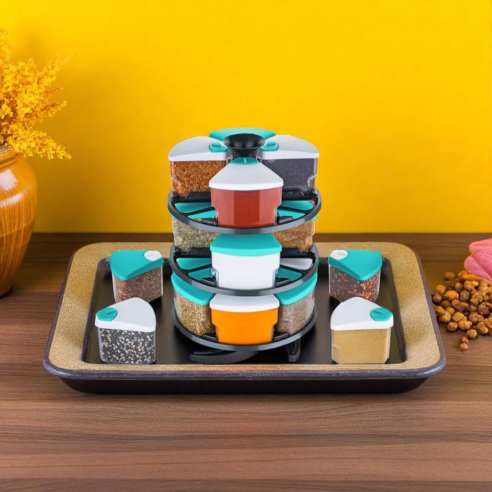 Multi-functional Rotating Kitchen Spice Rack with 12 Glass Seasoning Jars for Storing Various Seasonings