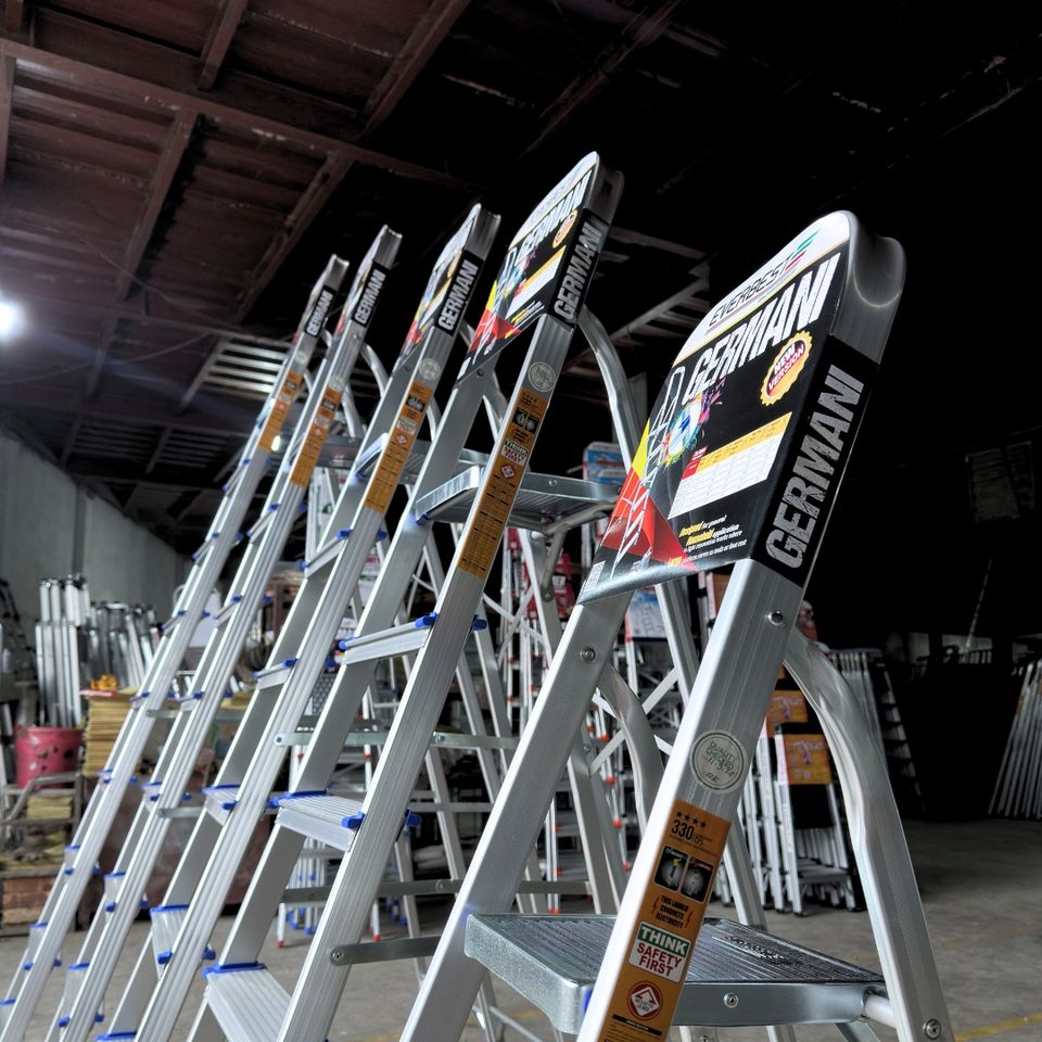 Multi-purpose aluminium ladder with stable design and secure grip.
