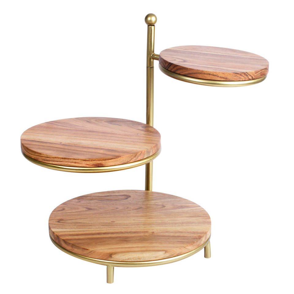 Multi-size 3- Tiers Wooden Removable Dessert Cupcake Tray with Metal Ring Carry Handle Cake Stand in Good Price