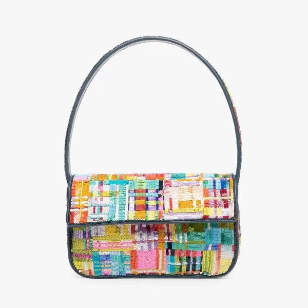 Multi-tonal Colorful Geometric Patchwork Sequin for Handmade Designer-Inspired Flap Purse Custom Beaded Button Eco-Friendly Bags