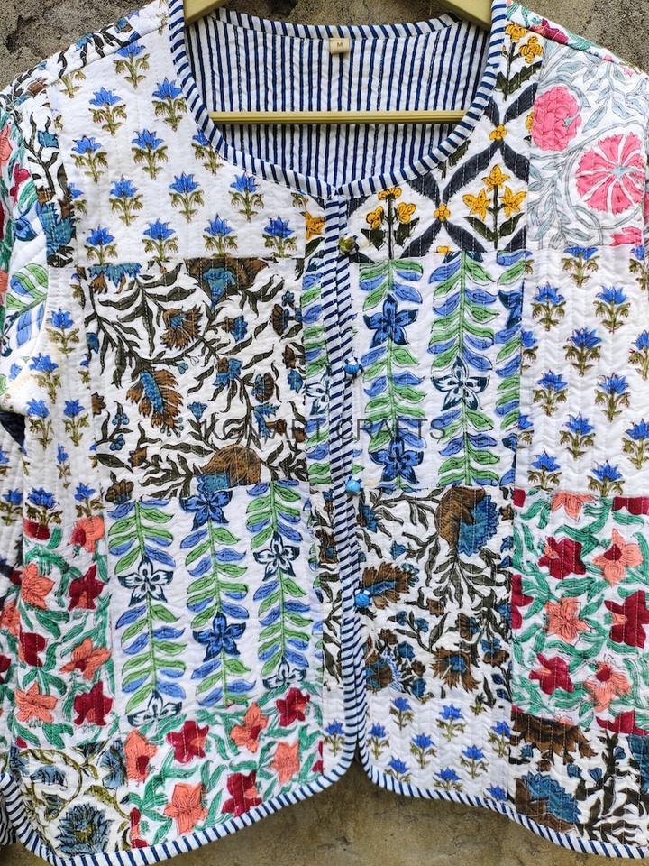 Multi White Color Hand Stitched Kantha Jacket Coat Indian Handmade Quilted Patchwork Patchwork Kimono Indian Handmade Jackets