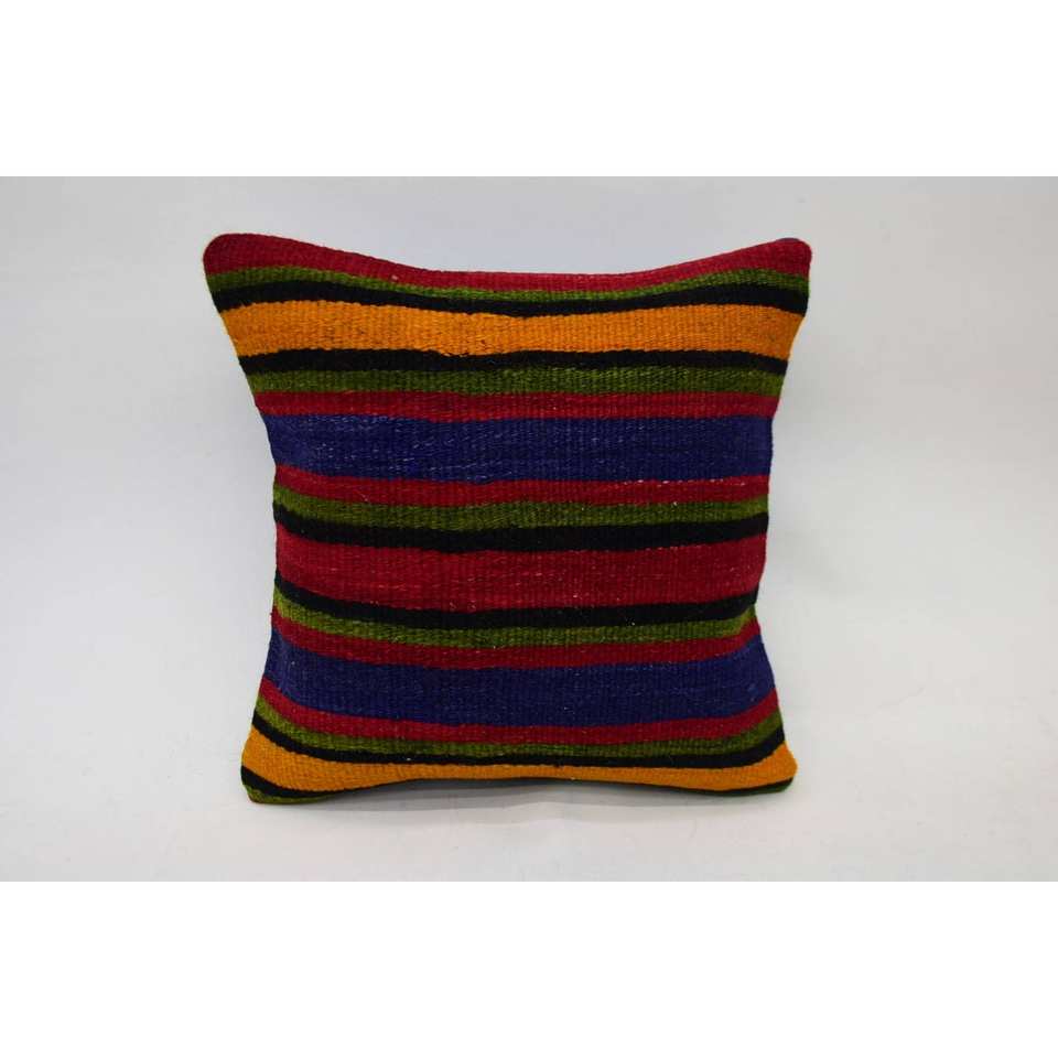 Multicolor 14x14 Wool Kilim Striped Non-Slip Eco-Friendly Vintage Luxury Fluffy Removable Washable Bolster Pillow Decorative