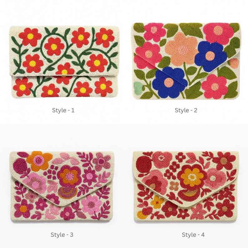 Multicolor Glass Beaded Handmade Bag Indian Handicraft MS Handicraft Brand Casual Handheld Baguette Bag with Handle