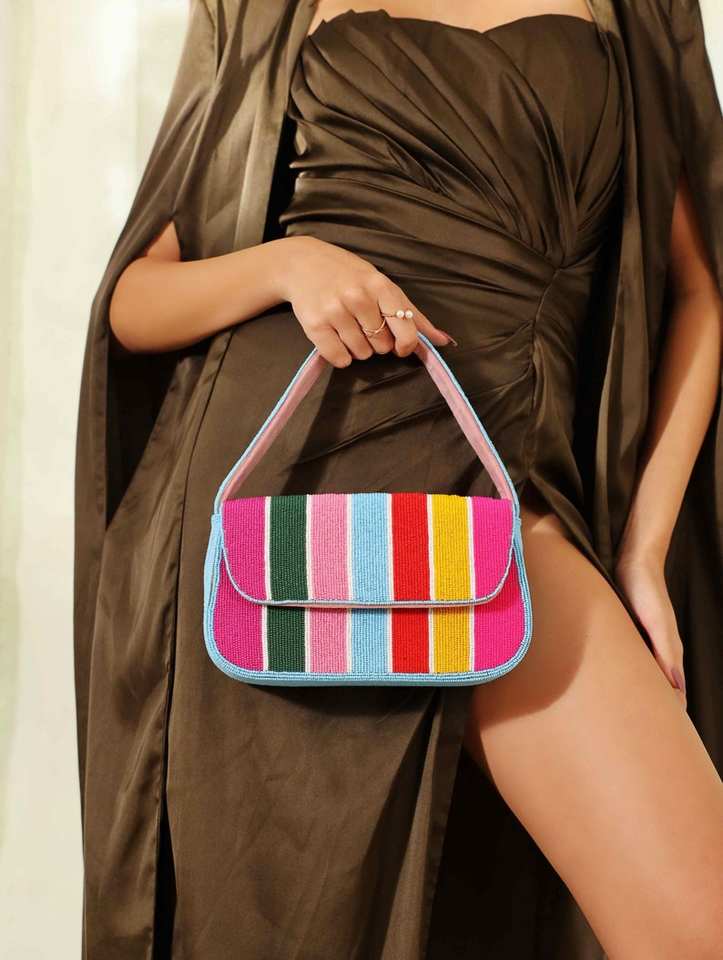 Multicolor Beaded Bag with Handle, Handheld Bag, Casual Hand Bag, Indian Handicraft, Handmade, Baguette bag,