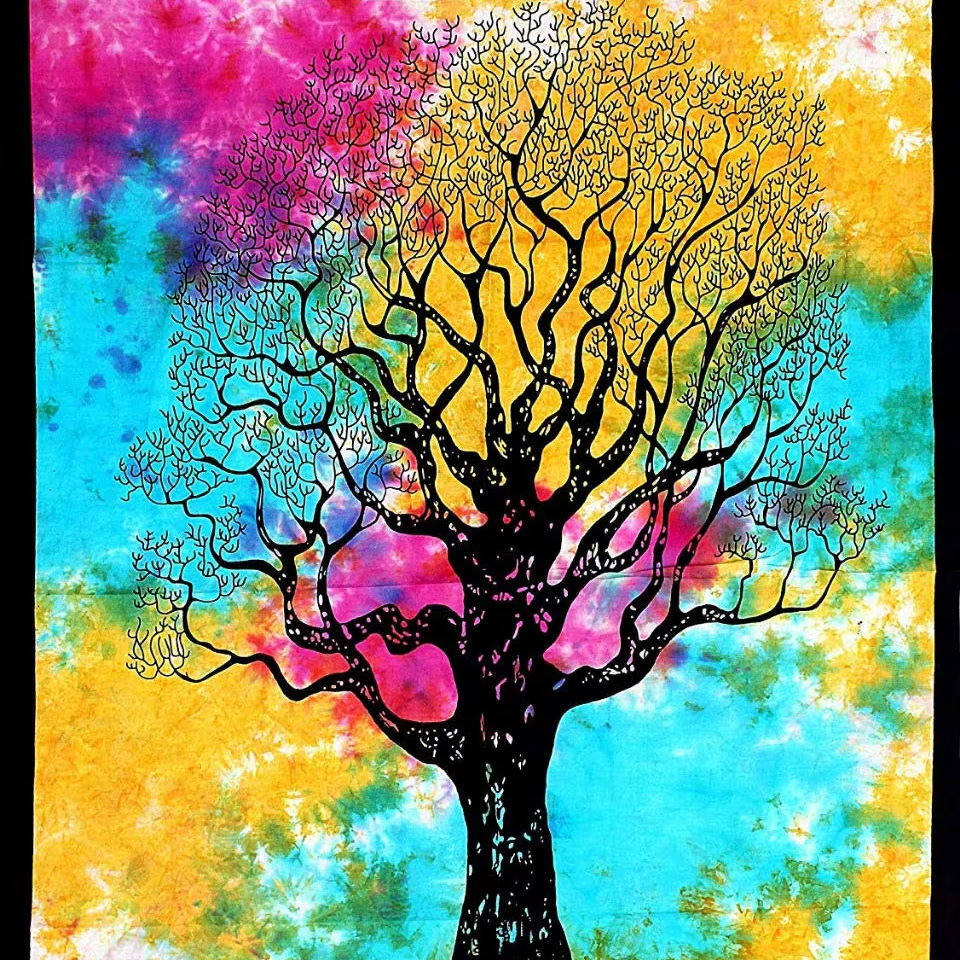Multicolor Bohemian Tapestries Dry Tree Tie Dye Mandala Tapestry Hippie Celestial Wall Hanging Poster Art Home Decor