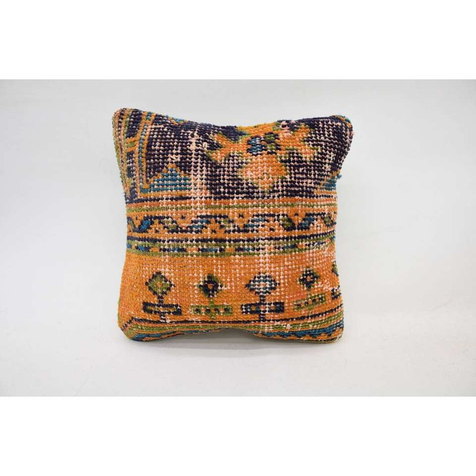 Multicolor Bohemian Wool Pillow 12x12 Inch Woven Embroidered Kantha Patchwork Vintage Square Print Portable Bedding Floor Use