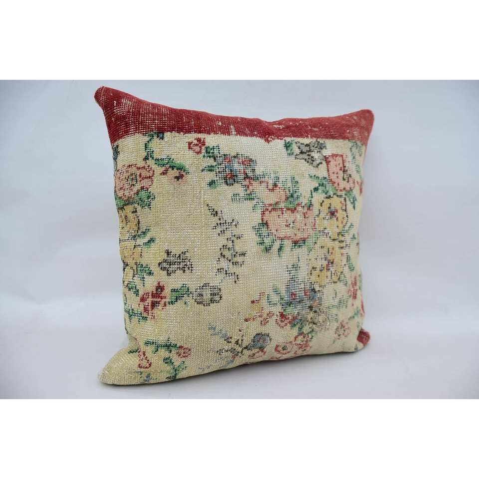 Multicolor Chinoiserie Toile Patchwork Wool Pillow 24x24 Inch Woven Vintage Floral Plant Leaf Patterns for Living Room Kitchen
