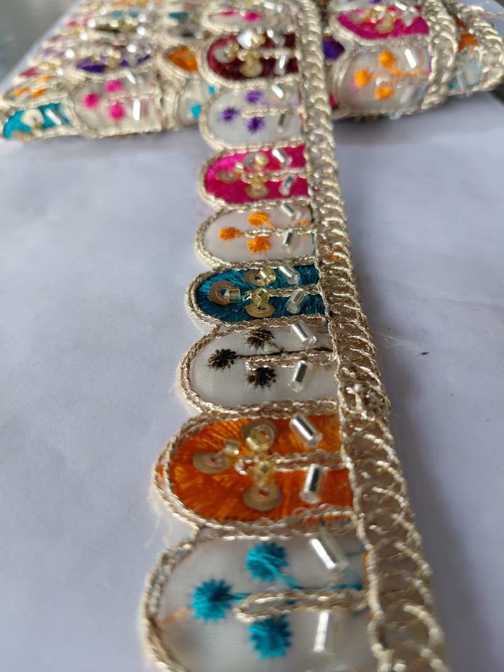 Multicolor Embroidered Lace Border Trim Decorative Sequin Embroidery Fabric Ribbon
